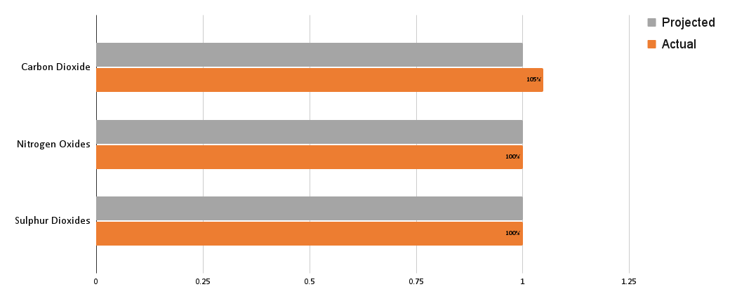 Product-specific projected and actual air emissions for this period compared to the regional average air emissions. |